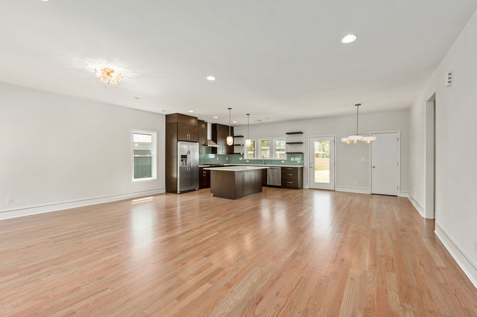 This brand new mid-century modern home is a rare single story new construction find. A large open floor plan welcomes you home with tons of natural light flooding in. Hardwood floors and statement lighting fixtures can be found throughout the house. In the kitchen, custom wood slab cabinetry, Quartz counter tops, a full stainless appliance package, and premium tile selections. Outside, a two car garage is housed under a unique, atomic style butterfly roof. Out back is a large, fenced in backyard with a covered patio.
