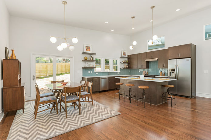 Our Mid-Century inspired homes feature open concept living-kitchen-dining floor plans with vaulted ceilings and large custom windows that allow for an abundance of natural light. We carefully pour over every detail in our Mid-Century homes, implementing iconic elements such as clerestory windows, exterior roof lines right out of 1960's California, unique carport designs, modern landscaping, even the little details down to the retro cabinet pulls and lighting.